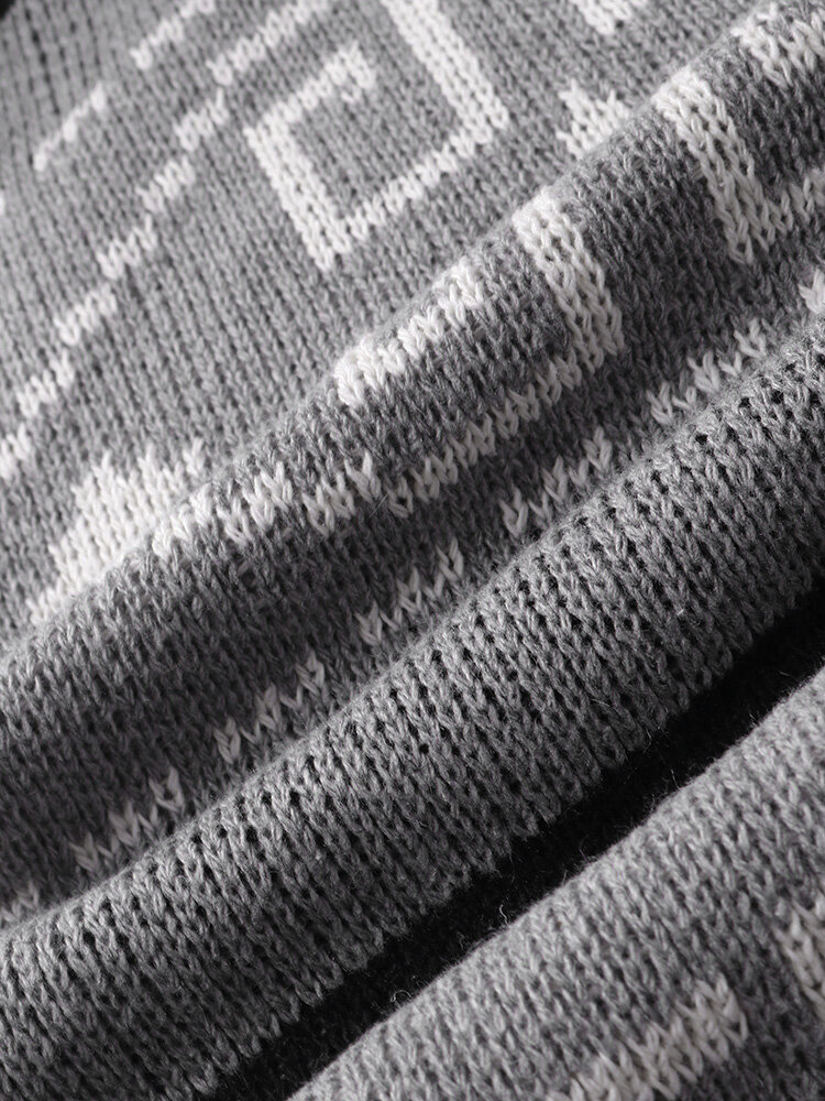 Mens Ethnic Print Zipper Knitted Casual Slim Fit Long Sleeve Cardigan Sweater
