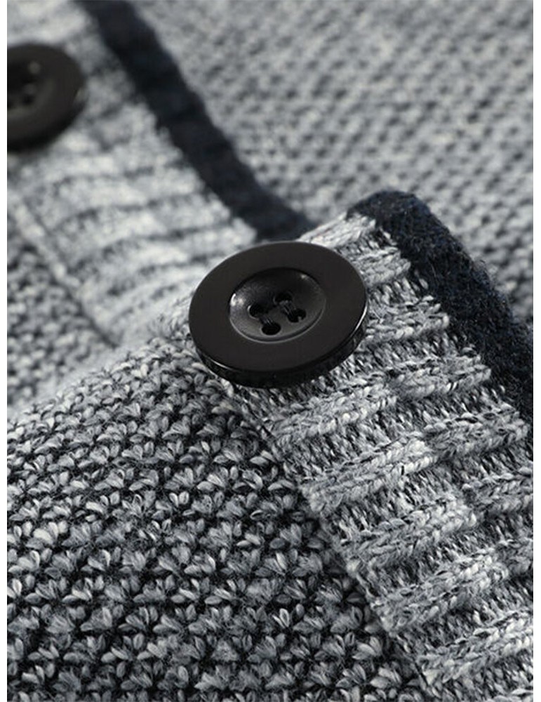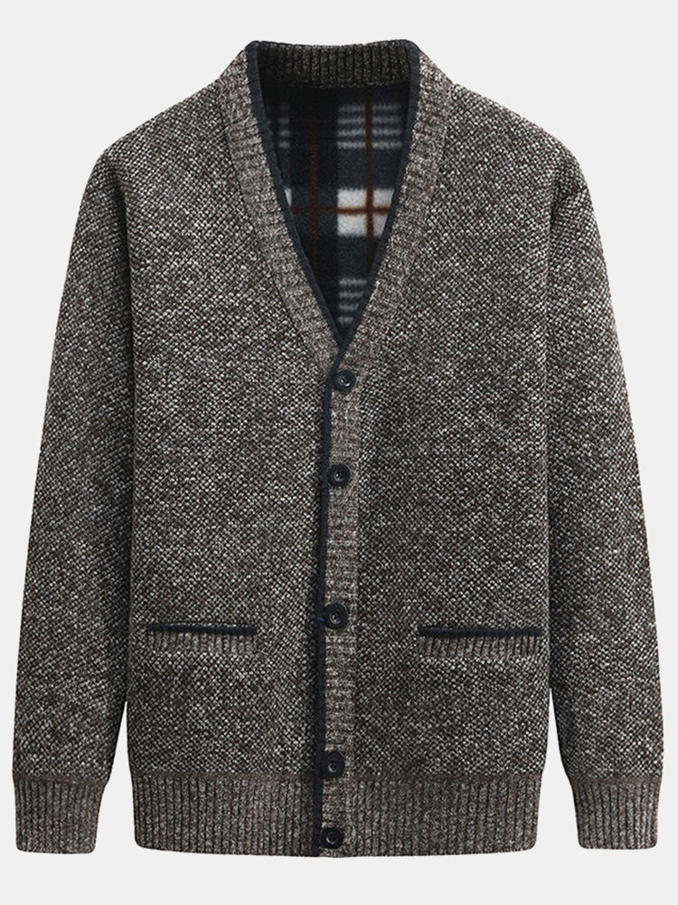Mens Knit Ribbed Button Front V-Neck Casual Double Pocket Thick Cardigans