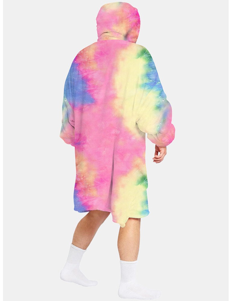 Mens Tie Dye Two-Sided Wearable Fleece Oversized Blanket Hoodie Loungewear With Handy Pocket